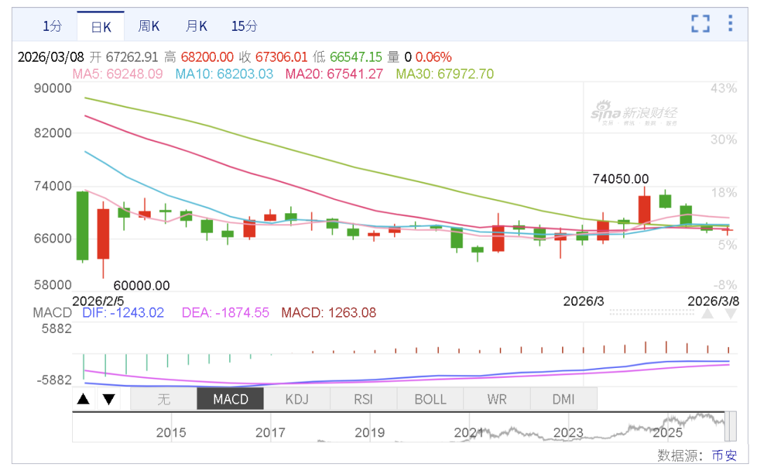 加密由于局势反复,流动性摇摆不定,本周先涨后跌,不过表现好于其它风险资产,或因为触及关键点位以及筹码出清缘故,在6~7万美元区间徘徊。