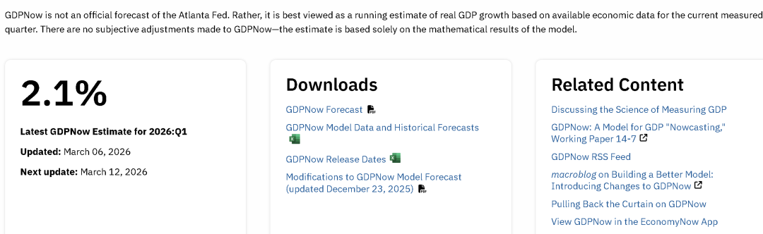亚特兰大联储预期美一季度GDP增2.1%。